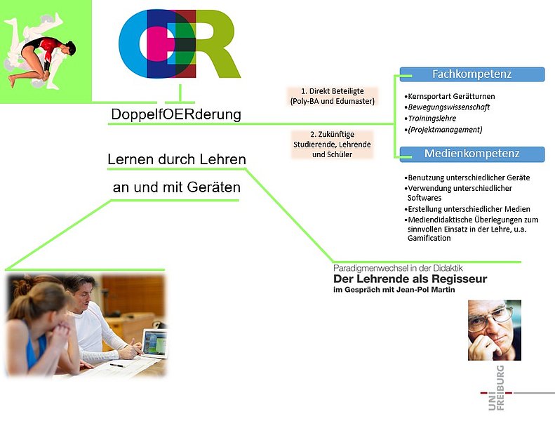 El objetivo del proyecto es probar la gamificación en la didáctica deportiva utilizando como ejemplo uno de los deportes principales, la gimnasia artística, y crear los medios digitales adecuados para ello. Los estudiantes de los dos cursos de estudio Poly-BA y Edu-Master crearán contenido de aprendizaje lúdico (gamified) que puede ser utilizado como materiales de OER (Open educational Ressources). Al tratar los contenidos con un enfoque lúdico y digital de aprendizaje, los estudiantes adquirirán habilidades adicionales en las áreas de digitalización y fomratos para aumentar la motivación de los estudiantes.